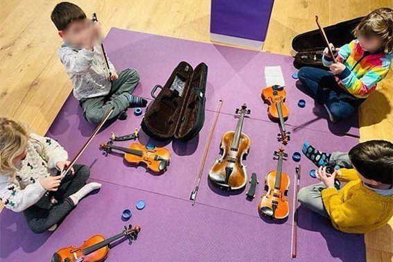 A més, descobrirem instruments com el violí, l’ukelele, la guitarra i el piano i aprendrem les nocions bàsiques d’aquests tot tocant i cantant cançons. També treballarem la respiració, la coordinació, la motricitat i la manera de relacionar-nos amb la resta tot jugant amb la música.